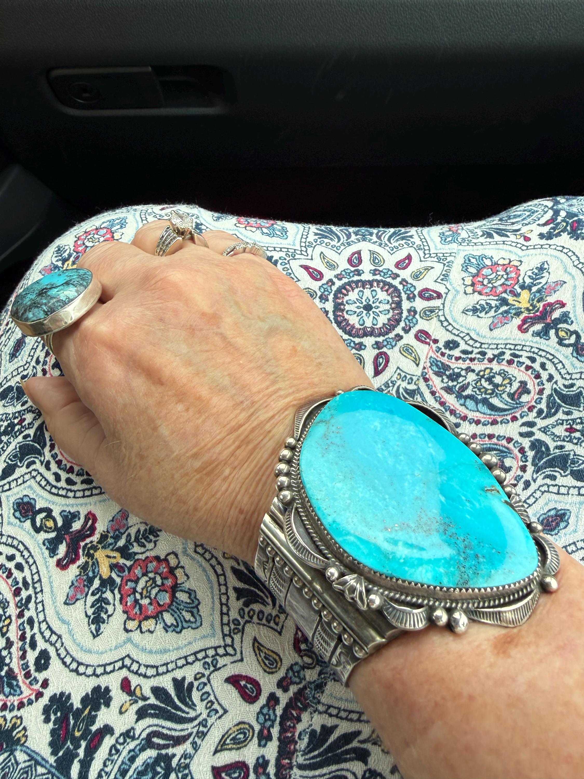 The silverwork surrounding the turquoise is very nice and the sides of the bracelet are also well done.