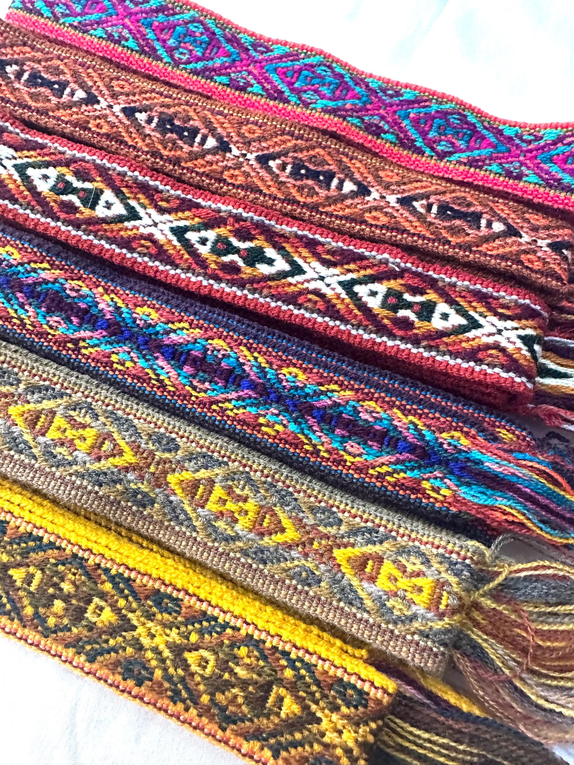These belts are made in Ecuador, in the beautiful and colorful town of Otavalo. I got them directly from the indigenous weavers.